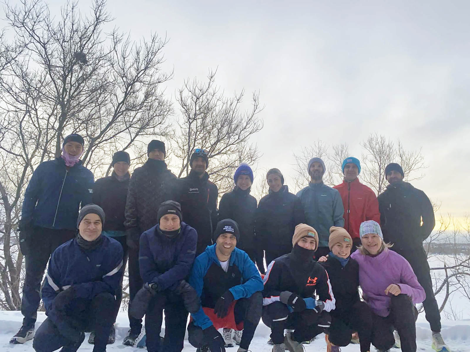 Inclement weather is usually just a challenge. Group has only been cancelled for local races or xmas. Cancellations or changes in meeting locations will be posted.